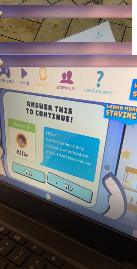 Maen nhw'n trafod ac yn chwarae gemau rhyngweithiol ar sut i gadw'n ddiogel ar-lein. Bydd lluniau yn cael eu postio yr wythnos nesaf.