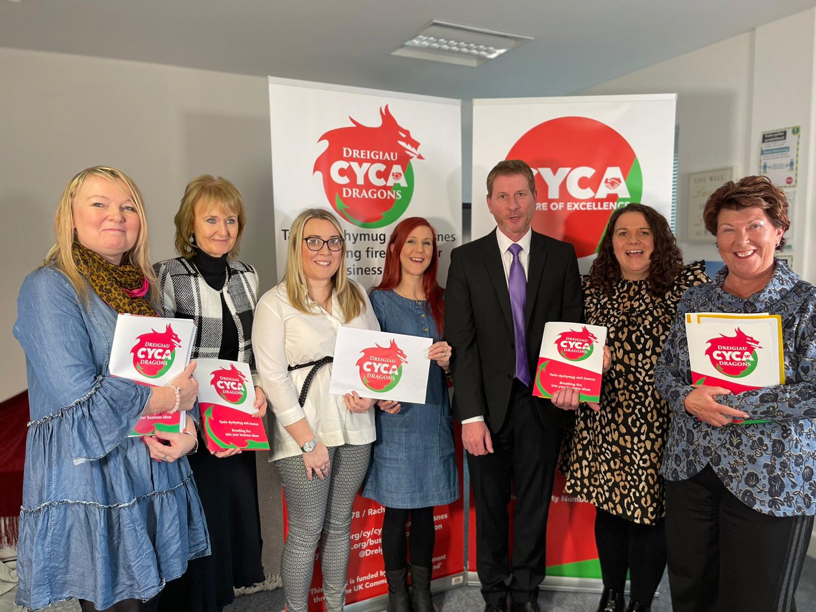 Mae Dreigiau CYCA Dragons yn rhaglen unigryw o gefnogaeth broffesiynol sydd am helpu pobl yn Sir Gaerfyrddin droi eu syniadau busnes i fod yn fusnes cychwynnol, neu ddatblygu ymhellach eu busnesau cychwynnol. Yn ystod 2022, cynhelir chwech chylch o gystadleuaethau a fydd yn rhoi’r cyfle i’r bobl sydd yn cymryd rhan yn y raglen ennill pecyn o gefnogaeth a buddsoddiad wedi’i deilwra i’w syniadau busnes nhw.
