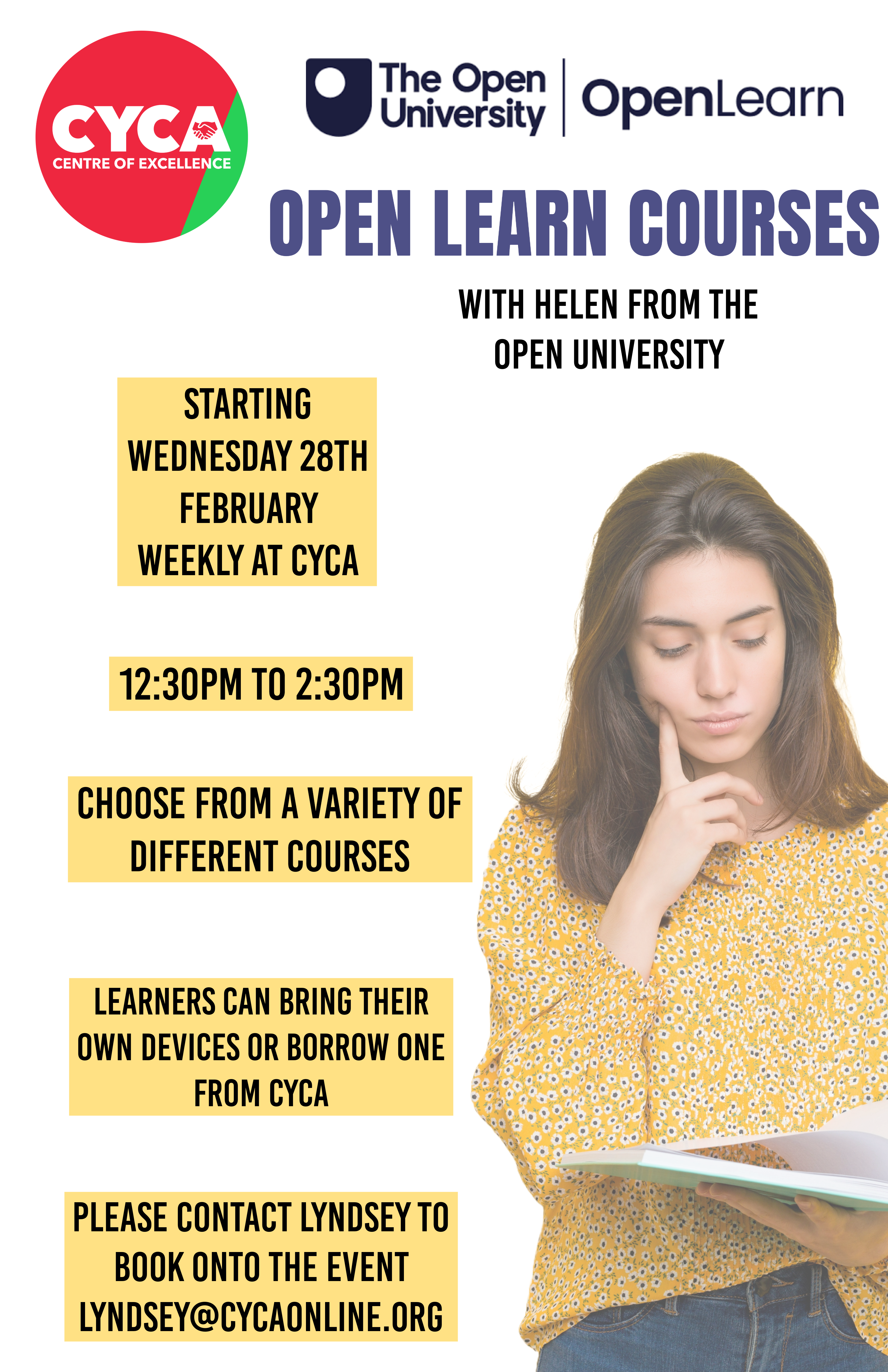 CYCA will be holding an event with the Open University Open Learn at our CYCA offices on the 28th of February 12:30pm to 2:30pm Childcare provided.